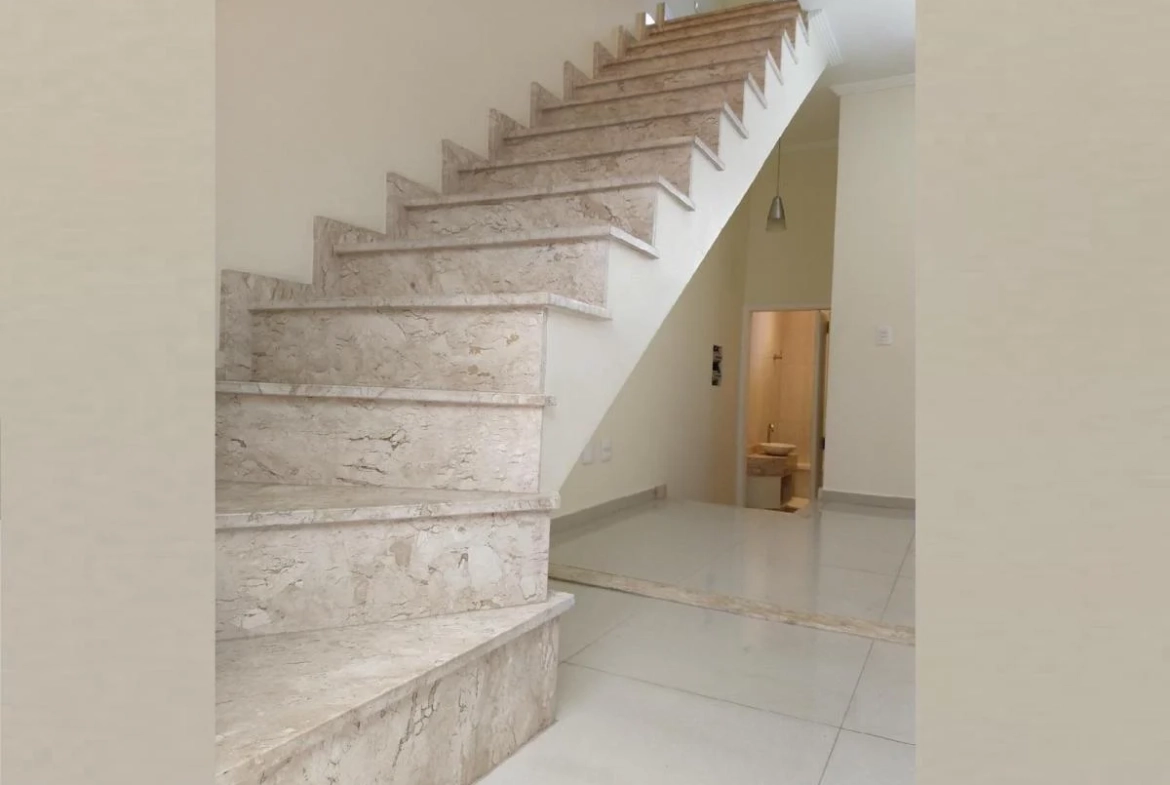 Fino acabamento em porcelanato e mármore travertino, conferindo elegância e sofisticação a cada ambiente.